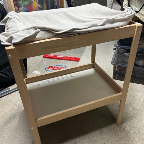 BRIO stellebord i hvit farge med skuff og hyller for oppbevaring. Laget i tremateriale, egnet for barn.