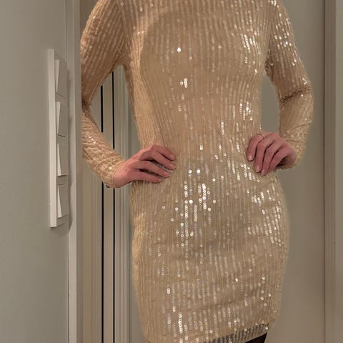Kjole fra Patrizia Pepe i lys rosa. Som ny. Strikken blir sittende i livet. Mangler belte, men kan brukes uten, eller så kan man kjøpe på stoffbutikk (var som et kremhvitt sløyfebånd i matt stoff)