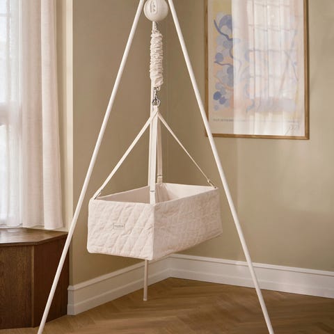 Produktbeskrivelse: Gi den lille babyen din et best mulig sovemiljø. Den hyggelige vuggen med den flate madrassen gir en komfortabel seng, som vugges beroligende av motoren vår, mens det solide stativet ser flott ut i alle rom, og hvor det stilles.