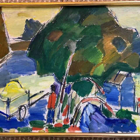 Lite gammelt maleri av Rogalandskunstneren Ola Varhaug. Flott lite maleri med motiv av Jærlandskap med hus. Selges 2500kr + porto. Eventuelle bud vurderes. Kan hentes i Haugesund etter avtale