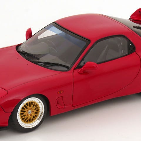 Selger en tøff 1980 Mazda RX-7 i skala 1:43, slik den ble kjørt i British Touring Car Championship BTCC. Modellen er ny i eske, og står montert på plate men uten display.