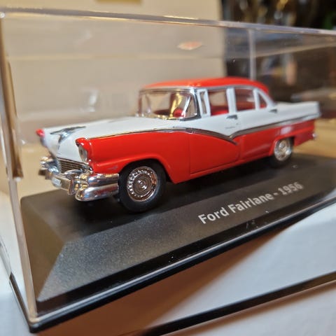 Selger en fin modellbil av en 1947 Ford Fordor i skala 1:43, i grønn farge. Denne modellen var Fords første store etterkrigsmodell, og representerte overgangen fra krigsrasjonering til privat bilproduksjon. Her har du muligheten til å skaffe deg et eksemplar av denne betydningsfulle amerikanske 40-talls bilen. Modellen er ny i eske.