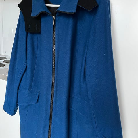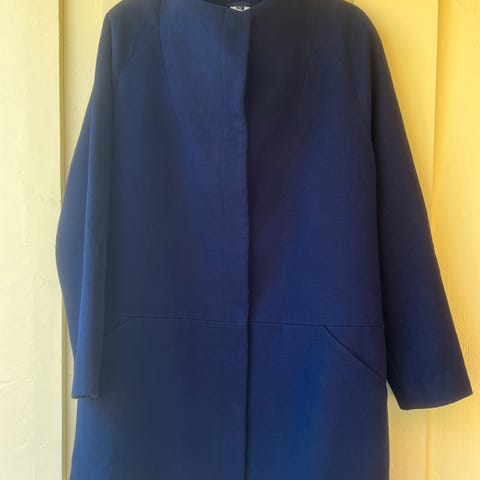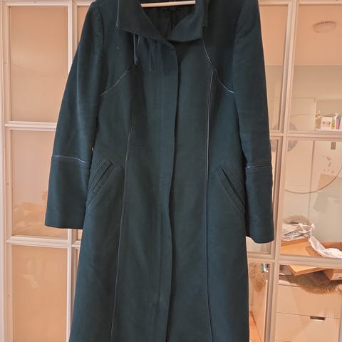 Fin kåpe i blåturkis/petrol fra popin. Str L. Knappelukking.