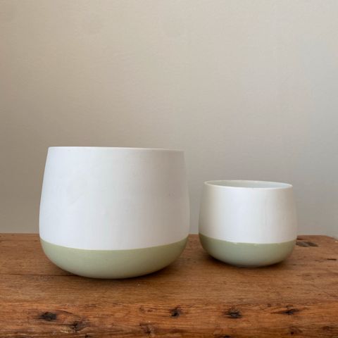 To nydelige lyslykter i porselen fra Porsgrund med matt hvit utside og blank gullfarget innside.
