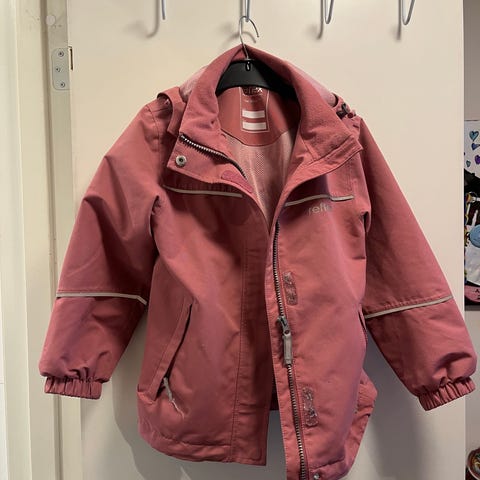 Jakken er godt og varm det er også veldig behagelig og har hette kan ta og på igjen og har relfex på armen og rundt selve jakken.