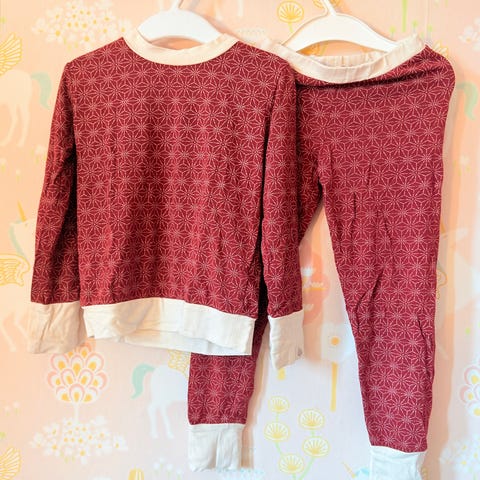 1 x deilig kosebukse i plomme / vinrødt fra Lilleba str 110-116, Godt brukt, masse god bruk igjen! Sydd fint på knærne, lite «rips» på baken, men ingen «skikkelige» hull eller merker. 60% bambusviskose / 40% bomull
