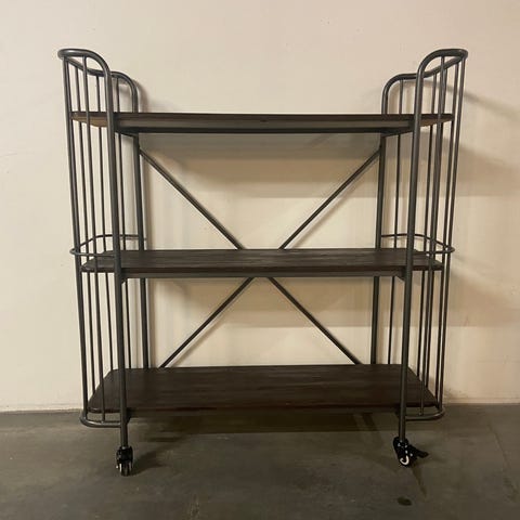 Selger en stabil butikkhylle med god lagringskapasitet. Perfekt til kiosk, dagligvare, lager, garasje eller verksted.