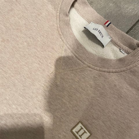 Les Deux II Genser i blå farge, størrelse S, laget av bomull. Genseren har et enkelt design med 'II' logo på fronten.