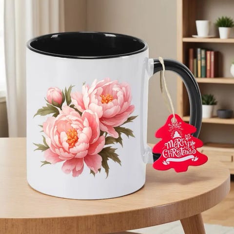 Elegant Rosa Pion Blomster Kaffekopp.