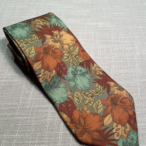 Kult og samlerverdig slips laget for WWF / World Wildlife Fund. Rød bunn med dramatisk fjell- og himmelmotiv i gult og oransje, og stor ørn i full flukt – et ekte statement-slips for natur- og dyreverninteresserte.
