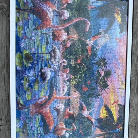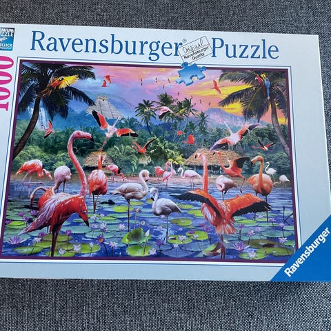 Puslespill 1000 brikker med fuglemotiv. Kun puslet 1 gang.