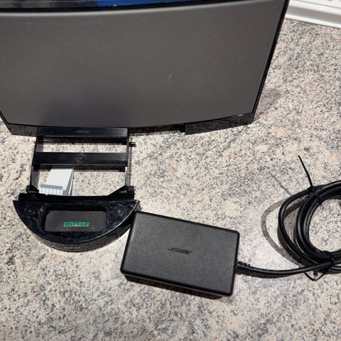 Selger denne gode og (overraskende) kraftige Bose-høyttaleren for faren min. Dette er SoundLink® Wireless Music System fra Bose som er kjent for solid kvalitet og veldig god lyd.
