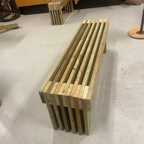 Benk laget av elever på arbeidslivsfag 9.trinn.