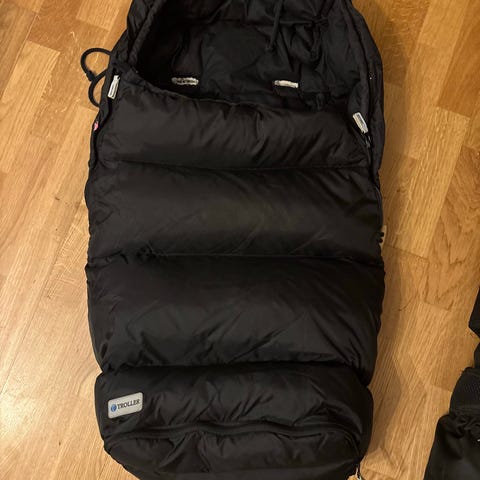 Pent brukt vognpose i to lengder. Fyllet er av 80 % dun og 20 % fjær, trekket/ shellet er av 100 % nylon. Et stofflag til hodet er festet med borrelås og kan tas av for vask. Soveposen er vasket.