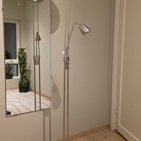 Pent brukt stålampe fra Kremmerhuset selges. Lampen er grå og har et industrielt "look"