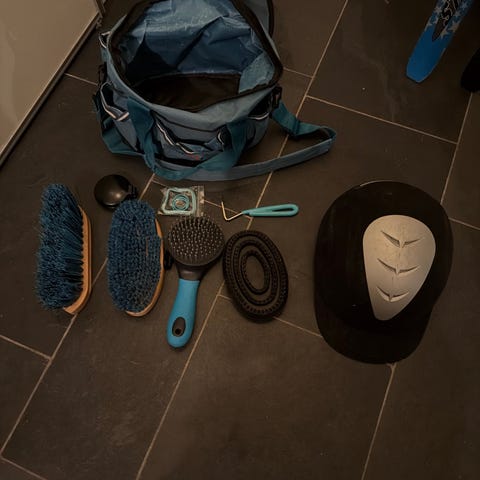 LeMieux pussevekse i fargen blålilla med div børster.
