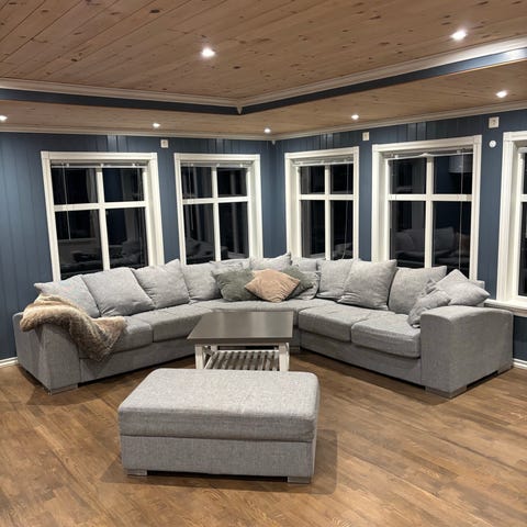Stor og veldig god sofa selges da sjeselongen ble på feil side i ny bolig😊 Sofaen er fra 2017, vi kjøpte den brukt for 3 år siden. Den var gått opp litt i sømmen på den ene puten på endeavslutningen da vi kjøpte den, det har vi sydd igjen og den har holdt seg fint siden (se bilde). Ellers er den i god stand og har mye bruk igjen i seg, ryggputene er vendbare og gjør at den har ekstra lang levetid. Putene har avtagbart trekk og kan enkelt vaskes. Sofaen kan deles opp i 3 deler😊 Hentes på kyrksæterøra.
