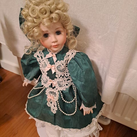 Flott dukkemann på huske til å henge opp. Total lengde 85cm. Dukken er 60cm lang, 23cm bred. Mer info t. 90012328