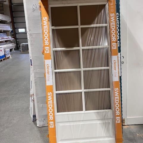 Dørblad med glass selges. 9x21 Låskasse og håndtak følger med. Ser pen ut. Kom med bud