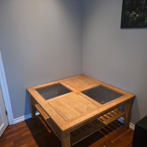 Størrelse; Bredde 50 cm, Lengde 85 cm, Høyde 43 cm, Tykkelse bord plate 26mm