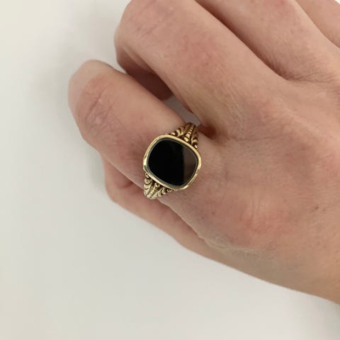 Lekker signetring / platering i 14k gult gull med onyx.