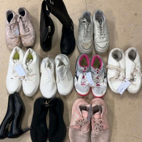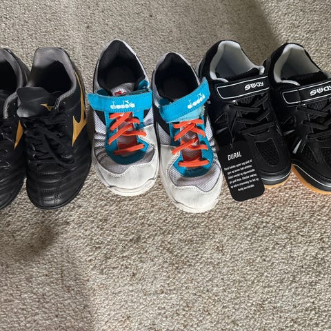 Pent brukte sko til salgs.