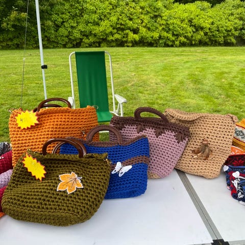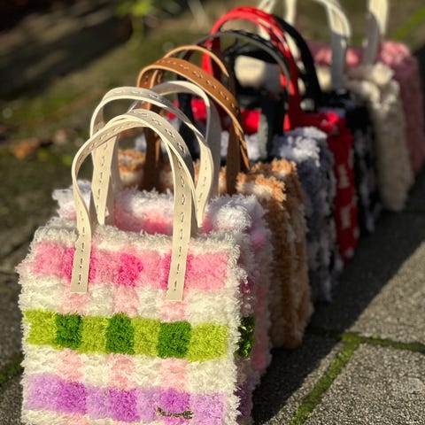 Ny laget vesker av polyester tråd og garn, foret inne.