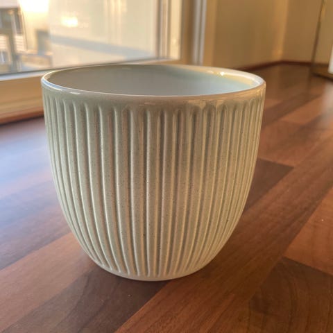 Hvit keramikk blomsterpotte 22,5 diameter, høyde 19,5. Kjøpt på plantasjen.