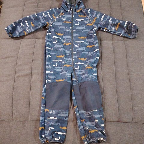 Name it blå softshellbarnedress laget av polyester i størrelse 116 for gutt. Dressen har hette, glidelås foran, elastiske mansjetter ved ermer og ben for bedre passform. Designet for å gi dekning og komfort ved utendørs bruk.