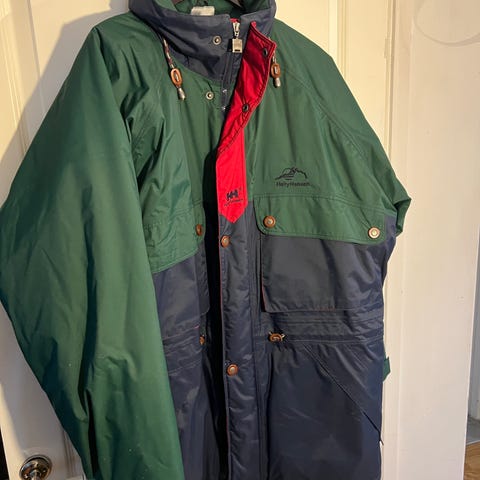 Jakken er godt brukt men duger fortsatt i mange år til, mhp, god stand på lommer, borrelås i ermer og frontlommer ,glidelås i sidelommer og innerlomme samt lufting under armer, alle disse glidelåsene er 100% intakte, kan impregneres så er den som ny!