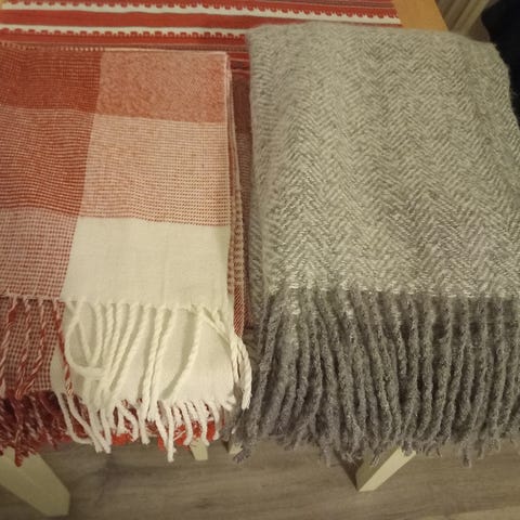 Str puter er 40×40 for den mørkeblå og 43×33 for den litt lysere.