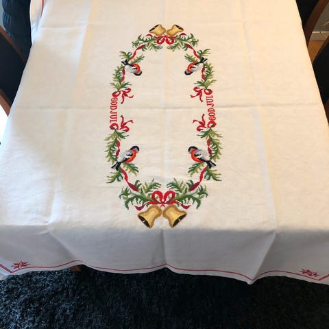 Uåpnet broderisett til tre hjerter i Hardangersøm til juletreet. Pakken har et par bretter, men er ellers fin.