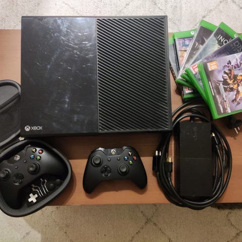 Xbox One oppgradert med 1TB ssd disk fra Samsung. Mye raskere spillinnlasting og lagring underveis. Resatt og klar for ny bruker. En kontroller medfølger.