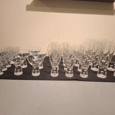 Jeg kan ikke dette, men tror det kan være champagneglass, likør, akevitt og hvitvinsglass, f.eks?