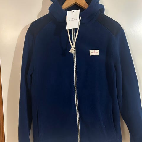 Amundsen Ullgenser i størrelse L for menn, laget av ull. Genseren har grå farge og en glidelås på brystet.