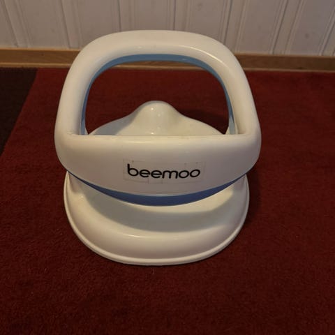 Badestøtte/badesete fra Beemoo. Veldig praktisk da du har hendene frie til å vaske babyen. Badestøtten har antisklifunksjon som gjør at den står stabilt i badekar eller dusj.