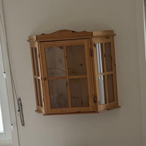 Vitrineskap i ubehandlet tre.