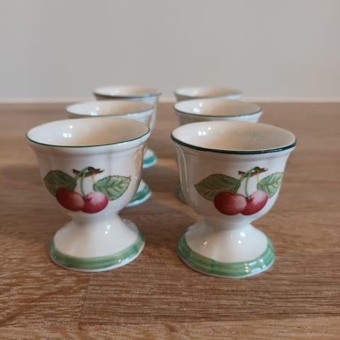 Kjekke skåler / boller som kan brukes til det meste. Høyde 5,5 cm, diameter 14 cm. Alle er meget pent brukt med minimale/ ingen bruksmerker. Antall 6 stykk.