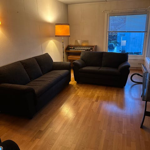 - 3 seter sofa med benstøtte og kan lenes bak på to ytterste seter.