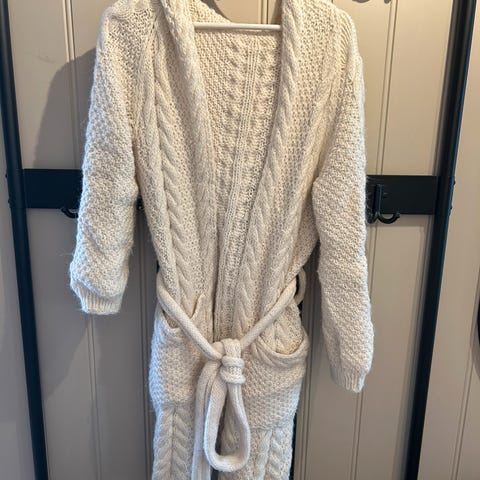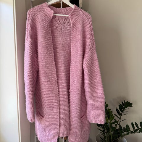 Selger en ny hjemme strikket Betty Tine Skappel jakke. Den er strikket i lyse grå alpakka garn. 2 tråder (tynn alpakka/alpakka). Den er strikket uten lommer. Den har glidelås. Jakken er i str L/xl. Selger den da den ble for stor til meg.