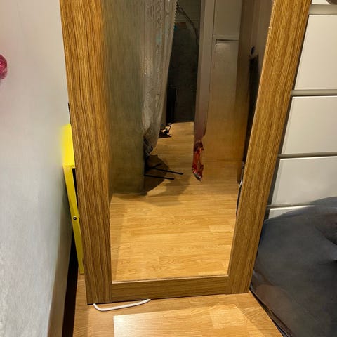 Stort speil med treramme, 150cm langt, 65cm bredt. Må hentes