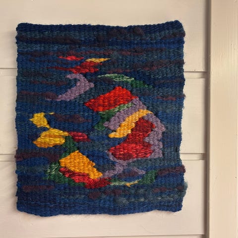 Veggteppe / billedvev,med figurmotiv i flotte farger