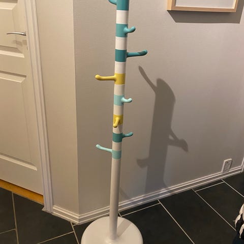 IKEA barn stumtjener / knagger med flere fargerike kroker. Laget i hvit plast med røde, grønne, blå og oransje kroker. Meget stabil/robust.