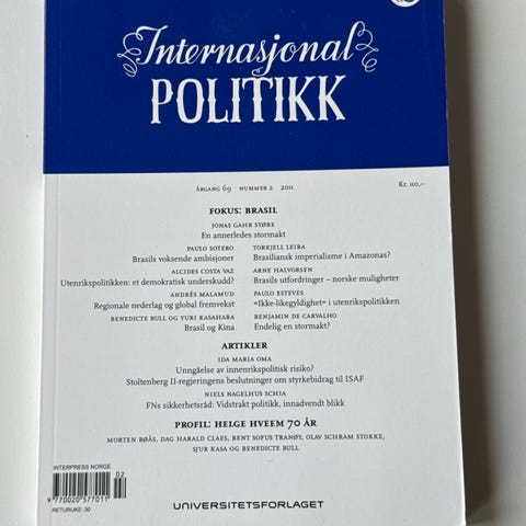 Universitetsforlaget Internasjonal Politikk tidsskrift innen samfunnsfag. Publikasjonen fokuserer på internasjonale relasjoner og utenrikspolitikk med artikler og analyser. Egnet for studenter og fagpersoner innen samfunnsfag.