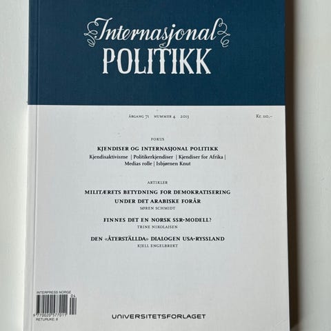 Internasjonal Politikk tidsskrift med fokus på samfunnsfaglige temaer som internasjonal politikk, sikkerhetspolitikk, og globale spørsmål. Inneholder artikler om norsk militæroperasjoner, internasjonale relasjoner og geopolitiske analyser.
