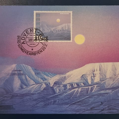 3 postkort stemplet Sveagruva, Isfjord og Longyearbyen 30.09.83 - kr 30