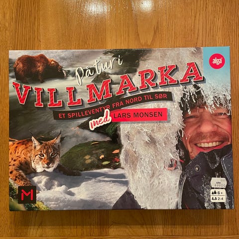 Brettspill med norsk tema, inkludert spillbrett, spillkort og regelbok. Passer for flere spillere og gir en opplevelse av norsk villmark.