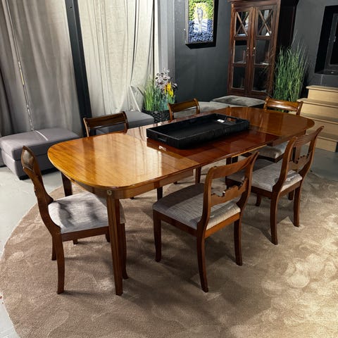 Stoler: 75 cm høy, 54 cm dyp, 57 cm bred (rygg)