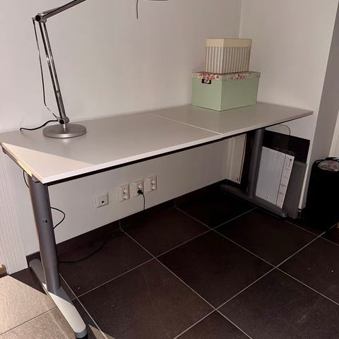 Siste dag fir å få der er i morgen! Skrivebord i hvit farge med to skuffer og fire ben i tre. Passer til kontor eller hjemmekontor. Enkel og funksjonell design.