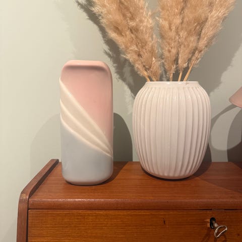 Depression vintage grape 1930-1950 2 stk tallerken rosa glass tallerken med dekorativt mønster. Tallerkenen har en rund form og er laget av glass i rosa farge. kr 250 stk